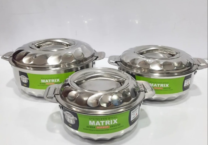 مجموعه سه پارچ نگهدارنده دو جداره استیل در سه سایز: کوچک 2500 متوسط ۳۵۰۰ بزرگ ۵۰۰۰ قابلیت قفل بروی سرپوش بروی ظرف بدنه و سرپوش دوجداره استیل